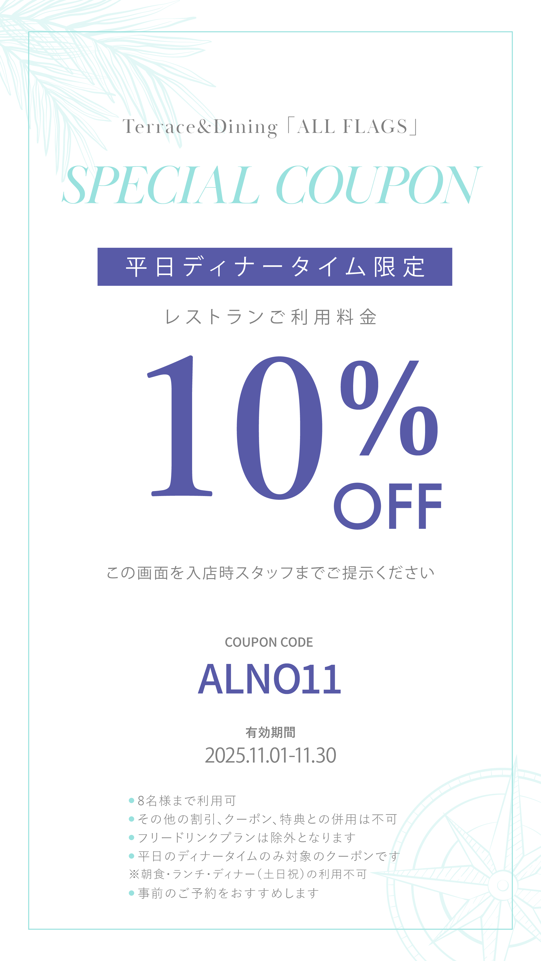 2025年11月 平日ディナータイム限定 Monthly Special クーポン
